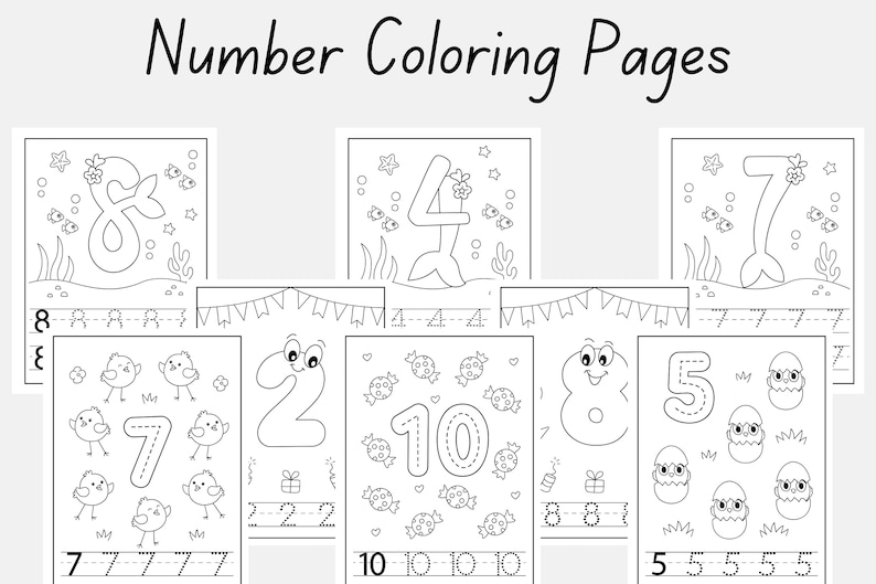 ** Numbers Worksheets (Number Coloring, Number Counting, Number Tracing)